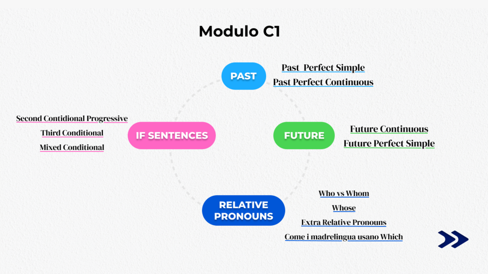 Path to Fluency è il corso di inglese che ti leverà tutti i dubbi di grammatica che hai sempre avuto, portandoti da un B1 (livello Intermedio) ad un C1 (livello Avanzato).